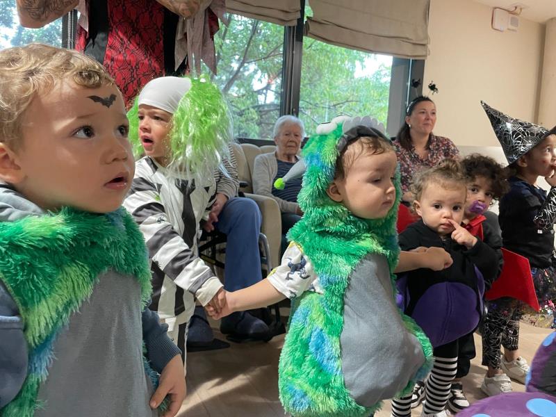 Dès 9h30, plus de vingt tout-petits âgés de deux mois à deux ans et demi, accompagnés de leurs assistantes maternelles, sont venus répandre bonne humeur et éclats de rire parmi nos résidents.
