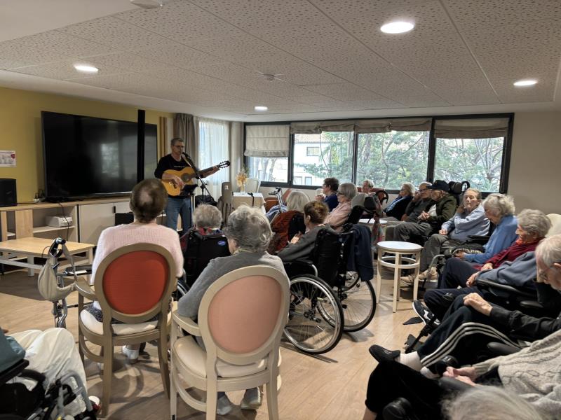 Le 6 Février 2026, la guitare était une nouvelle fois à l'honneur avec un programme placé sous le signe de la variété française, pour le plus grand plaisir de nos résidents.