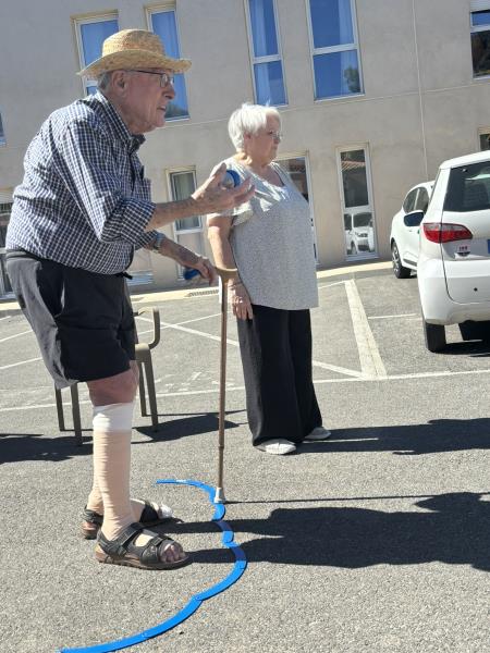 Sur le parking de la résidence, une partie de pétanque s'est également tenue, utilisant des boules schmolles adaptées à tous les terrains, permettant à chacun de participer sans difficulté. L'ambiance était joyeuse et animée, avec des rires et des applaudissements résonnant à chaque bon point marqué.